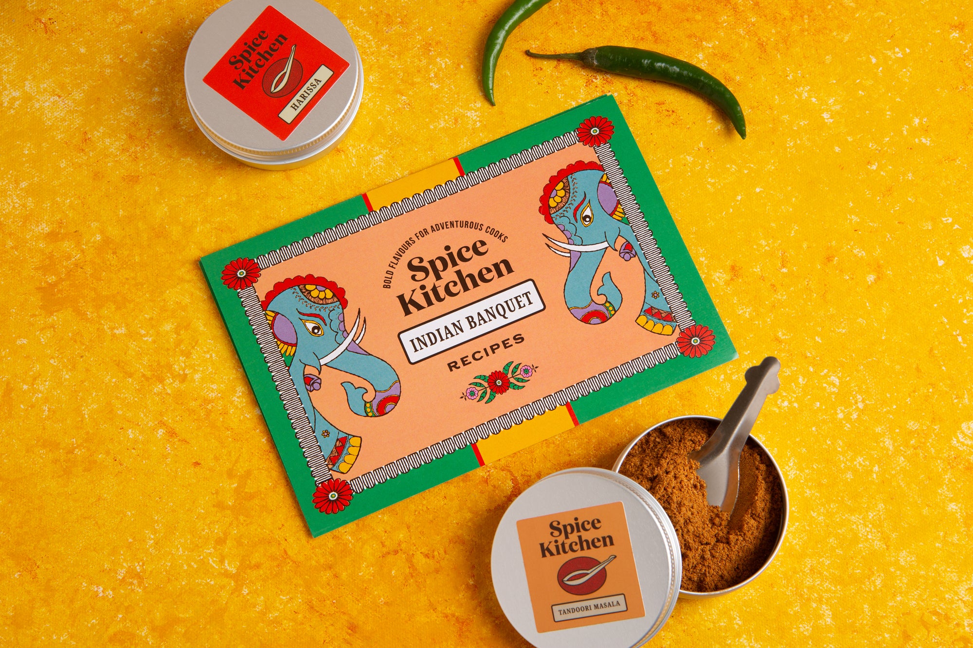 A wonderful and thoughtful gift. Each tin contains four spice blends, a spice spoon for measuring out, easy to follow recipe cards and a handy shopping list.