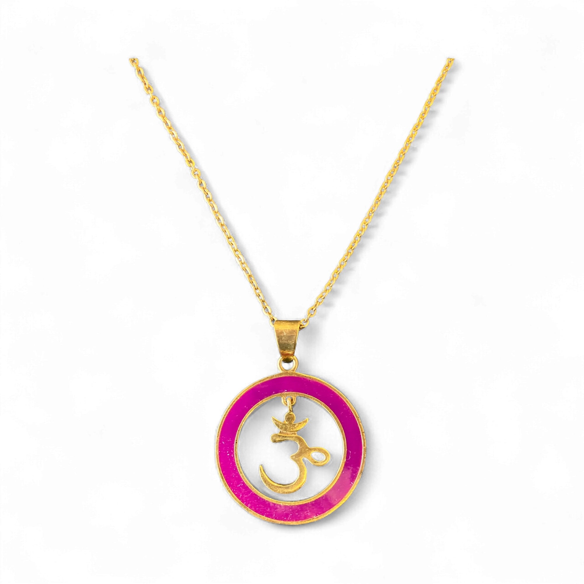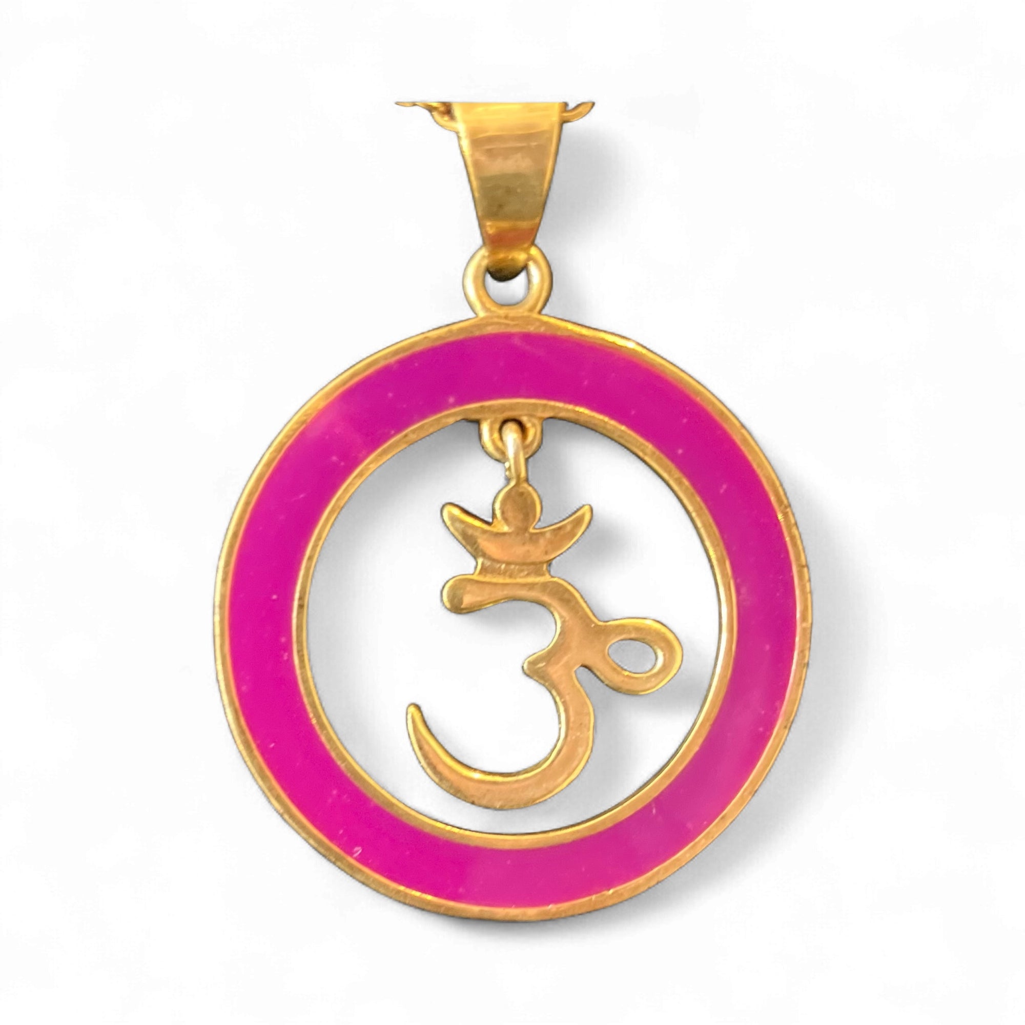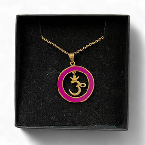Our Om Pendants are fresh, fun and will add a pop of colour to any outfit. The Om sits dangling from the circle of enamel and allows the wearer to play with it, be it in a contemplative mood or when you need to take stock and breathe l