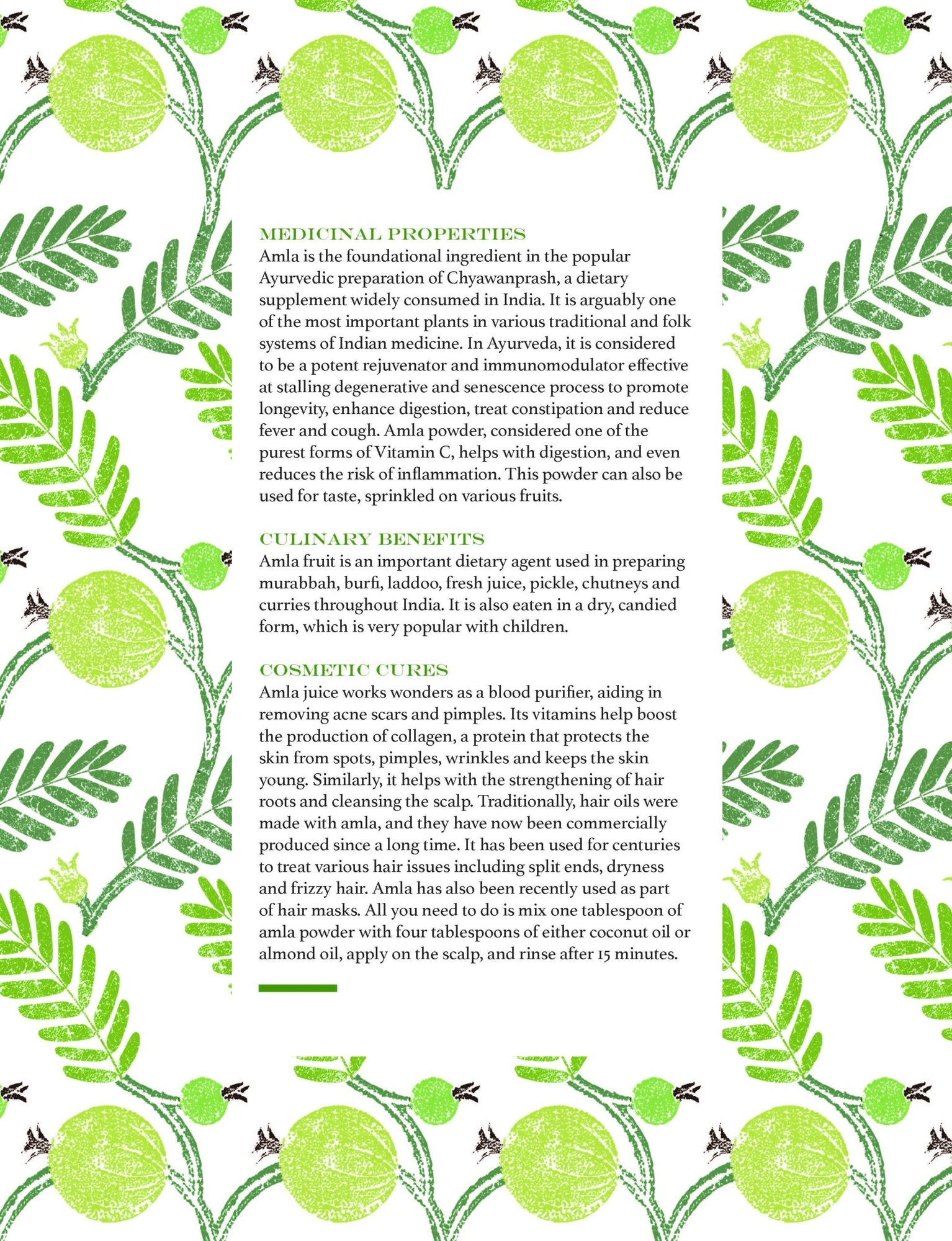 Take a journey into the heart of India’s herbal legacy. A stunningly illustrated compendium of 100 of India’s most illustrious herbs, the book documents their ancient wisdom, versatile applications and remarkable benefits. From haldi (turmeric) – a powerful antiseptic that is widely used for beauty rituals and for its antiinflammatory goodness to jamun (Indian blackberry), a rich source of vitamins and antioxidants, and the kokum (butter tree) prized for its sweet and tangy taste, a reliable saviour from the summer heat, these herbs form India’s rich heritage, offering a wealth of benefits. Harnessing the power of these herbs accompanied by illustrations that are inspired by India’s hand block printing tradition, this beautiful book sheds light on how to live better, eat better and make holistic choices using these sacred herbs that have been a part of our generational wisdom.