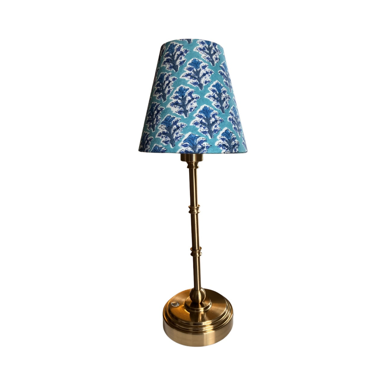 Block printed fabric from India by master craftsman and lampshade is artisan made in the UK.