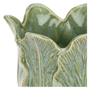 An elegant stoneware cachepot with parrot tulip design. Available in two glazes and three sizes.