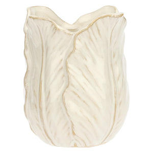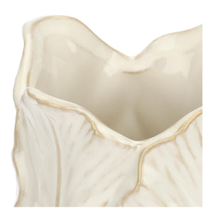 An elegant stoneware cachepot with parrot tulip design. Available in two glazes and three sizes.